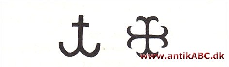 latin kors med ankerlignende hager på foden eller græsk kors med ankerhager på korsenderne.
