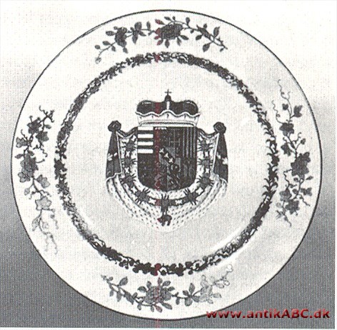 Porcelæn af ostindisk (kinesisk) oprindelse, smykket med europæiske våben efter bestilling. Senere fremstillet på mange europæiske fabrikker.