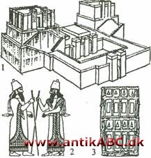 Illustrationer: 1. tempel, 2. dragt, 3. husmodel.