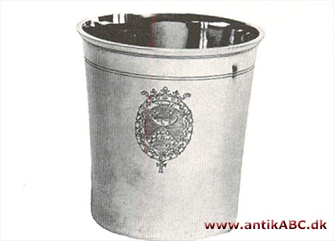 Sølvbæger indvendigt forgyldt. Våben for statholder Jacob Benzon. Mester Søren Nielsen Wesing, Trondhjem (1716-59) (ABR).