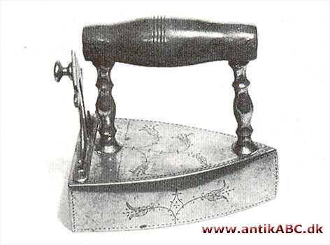 Et hult strygejern - for det meste af messing - det lukkes bagtil af en dreje- eller skydeklap. Når man skulle stryge med det, lagdes der jernbolte, som var glødet op på ildstedet, ind i det.