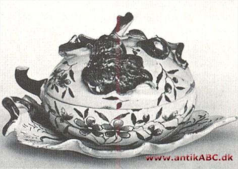 Terrin fra Drammens fajancefabrik ca. 1760. Blådekoreret (ABR).