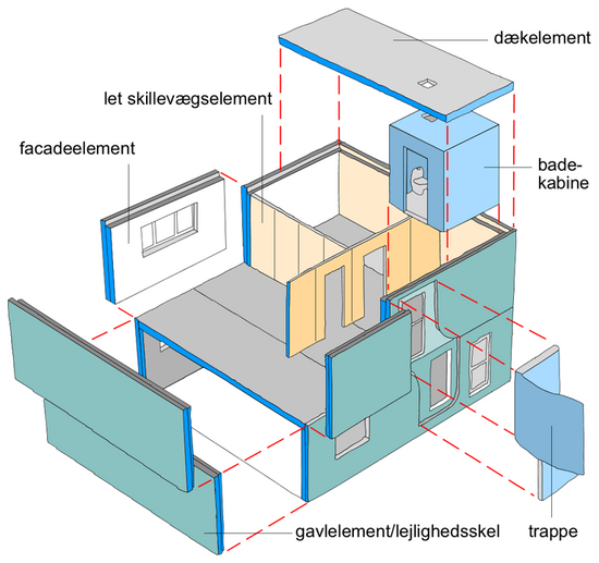 hvilke materialer og konstruktionsprincipper der er anvendt. Der henvises til montagebyggeri,