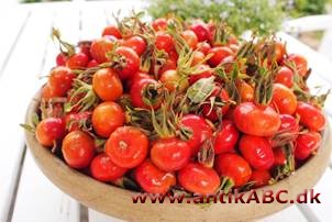som rosenbuskens frugter, mellemlys mønjerød.