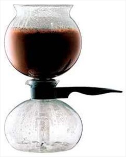 Man eksperimenterede i anden halvdel af 1700-tallet med k., men virkelig brugbare typer kom først frem i forrige århundrede. De fleste gamle k. består af en fod med et metal stativ, hvori to kolber er fastgjort. Under den ene kolbe er anbragt en spritlampe. De to kolber er forbundet med et metalrør, som går ind foroven og når ned til bunden af dem begge. Når den ene kolbe, som kan lukkes helt tæt, og som har en hane forneden, varmes op, presser damptrykket vandet gennem røret over i den anden beholder, hvori der ligger malet kaffe. Når den tillukkede kolbe derefter afkøles, kommer der undertryk i den, og vandet suges tilbage. Ved hjælp af et filter standses kaffegrumset. Man kan så aftappe den færdige kaffe fra hanen i kolbens bund. Gamle k. er ofte meget smukt udførte. Man har dem f.eks. med kolber i Sèvres porcelæn med malede og forgyldte udsmykninger.