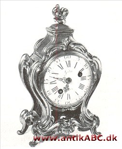 Bronze- eller marmorpragtur af fransk oprindelse fra midten af 1700-tallet. Ofte smykket med en fantasifuldt udformet skive og diverse skulpturer. Svarer til den eng. mantel clock.