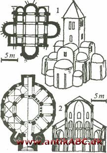 Illustration 1. plan og opstalt af kirke (Germigny-les-Pres)