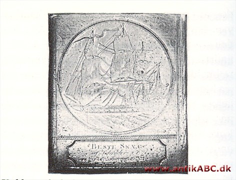 Kobberstikplade i grovere udførelse til trykning af pakninger til pibetobak (Middelfart Museum).