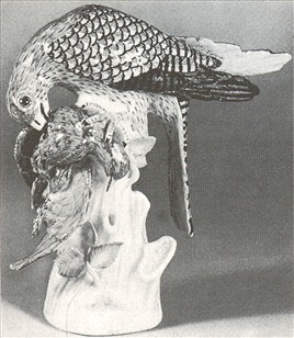 J, J, Kändler. Spurvehøg på træstub, Meissen 1734 (ABR).