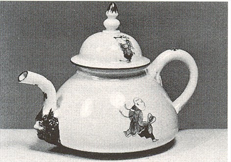 Tepotte af Böttger porcelæn med kineseri-dekorationer. Meissen 1723-24 (ABR).