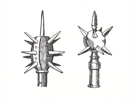 morgenstjerne, pigbesat kølle; gl. vægtervåben fra 1600 -
