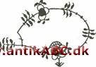 Oprindelig anvendt hos Meissen (s.d.) i 1740'erne, hvorfra det breder sig til andre europæiske fabrikker. Den kgl. Porcelænsfabrik benytter mønstret fra ca. 1780, og det opnår en uhyre popularitet op gennem tiderne. Det er i den grad knyttet til D.k.P. at man på udenlandske fabrikker kalder det for Københavnermønster, Helsingør og Viking. I begyndelsen var det friskt og djærvt malet, men er nu de generet til et prestigemønster. Anvendes også fra ca. 1855 på Bing & Grøndahl (s.d.).