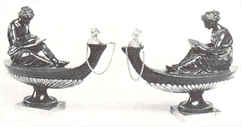 Et par franske empire-olielamper af patineret og partielt forgyldt bronze (ABR).