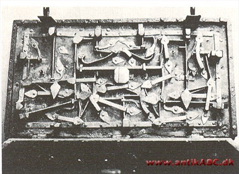 Låg til lille pengekiste med låsemekanismer. Renæssance (Flemming Kjær).