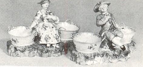 Et par dobbelte saltkar medforelsket kavaler og dame. Höchst 1750