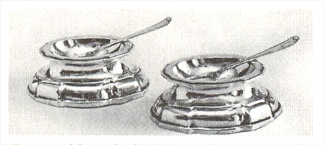 I øvrigt var fadene sjældent til salt alene, der kunne under dem være rum til spisebestik, modgift og andre sager, som dengang var nødvendige ved middagsbordet.