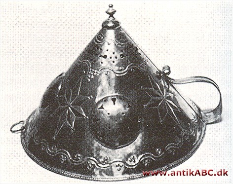 Tækkefad af messing med drevne. punslede og gennembrudte dekorationer. Slesvig (Nationalmuseet).
