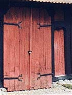 Laden er fra Sønder Bjært på Koldingegnen og et fint eksempel på den gamle bulteknik med vandrette planker mellem lodrette stolper. Som landbrugs-bygning er den placeret uden for den bymæssige bebyggelse.