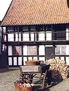 Købmandsgården blev genopført i Den Gamle By i 1942 og danner ramme om museets faste udstilling, Købmandsgården 1864, der skifter med årstiderne.