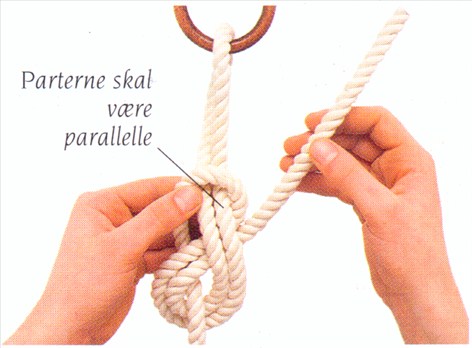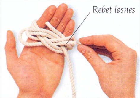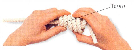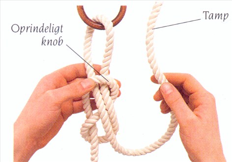 (1) For at fjerne slæk fra et knob og få dets parter lige stramme, trækker man i rebet ved knobets start.