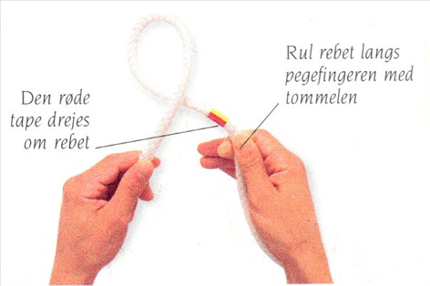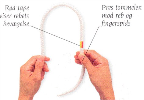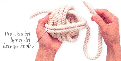 BINDING AF PRØVEKNOB Ved binding af et prøveknob følges vejledningen trin for trin, men uden at de detaljerede indstik foretages. Mærk rebet der, hvor knobet er afsluttet, før det løses igen.