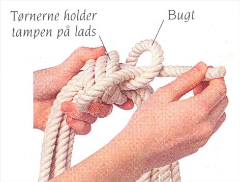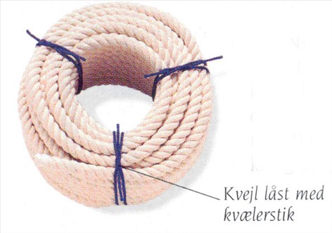 (2) Før tampen mindst tre tørner om kvejlen og væk fra bugten Stik tampen gennem bugten. Skub tørnerne ind mod bugten, så tampen låses.