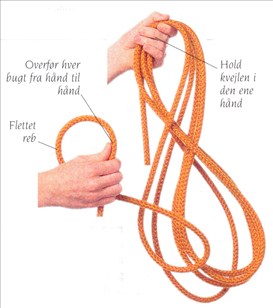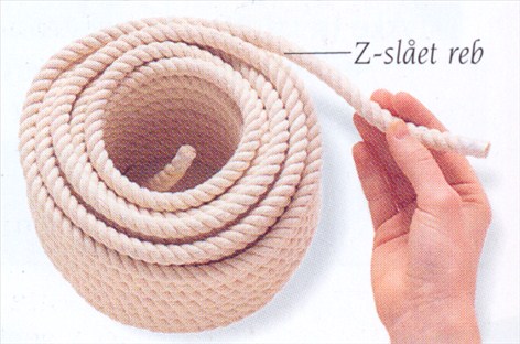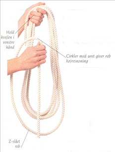 Ved Z-slået reb oplægges med uret i lige store cirkler med højre hånd. De overføres løbende til venstre hånd. Overfør cirkler af S-slået reb fra den ene hånd til den anden mod uret.