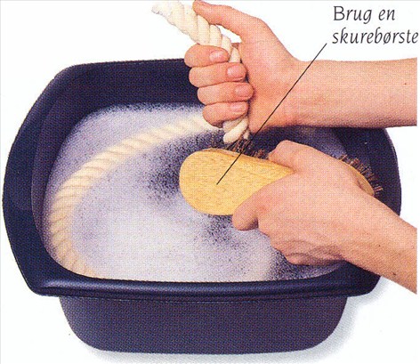 Sand, grus og olie kan hurtigt slide et reb indefra. For at undgå dette skal man skrubbe et snavset reb i varmt vand med.opvaskemiddel. Hæng rebet op, til det er gennemtørt, før det kvejles op og lægges til side.