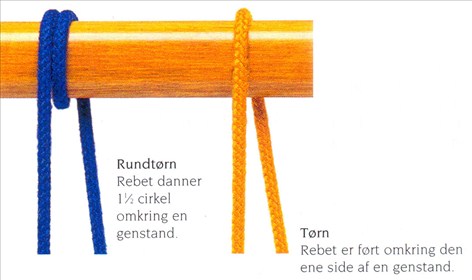 Et reb, der danner 1½ cirkel omkring en genstand eller et andet reb, danner en rundtørn. Et reb, der kun går rundt om den ene side af en genstand eller et reb, danner en tørn. (En række cirkler kaldes ikke for rundtørner, men blot tørner.)
