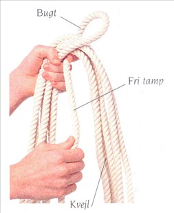(1) Kvejl en længde reb op, så tampen er fri. Før den frie tamp op over kvejlen og derpå tilbage midt gennem kvejlen, så der dannes en lille bugt