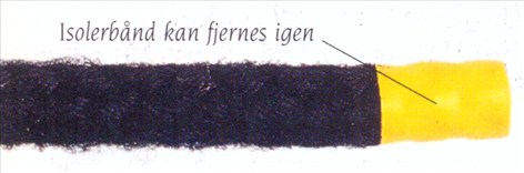 Man kan også vikle isolerbånd om en rebende. Det gør enden stiv - en fordel ved binding af visse knob og ved indstik af kordelender ved splejsning