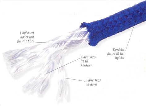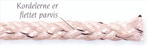 Dette smidige reb danner ikke kinker. Det er flettet med to par Z-slåede og to par S-slåede kordeler.