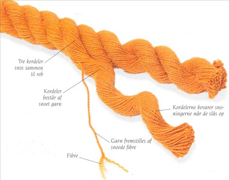 Flettet reb opkvejles i ottetaller, så bugternes højre- og venstresnoning modvirker hinanden.