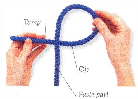 (1) Dan et øje, hvor tampen på et reb ligger bag den faste part.