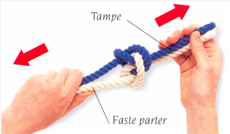 (4) Begynd at stramme stikket ved at trække i tampene og de faste parter.
