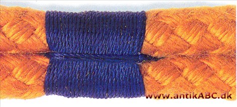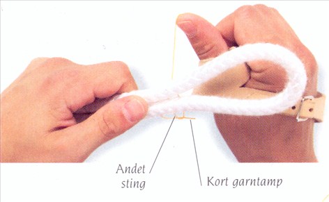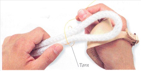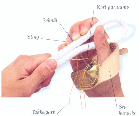 (2) Stram stingene ved at trække i takkelgarnet, så den korte garntamp ligger ind mod rebet.