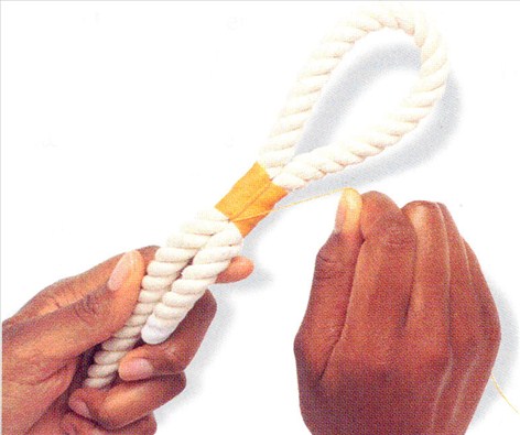 (2) Læg en række tørner om de to parter reb, og stram dem til en ad gangen