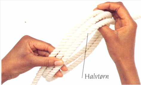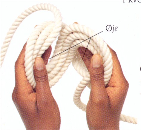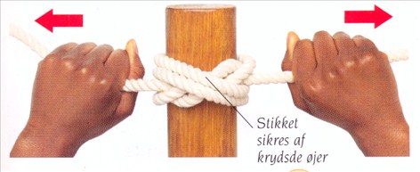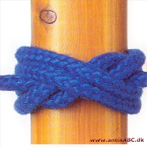 (1) Kvejl et reb to og en halv tørn op mellem hænderne. Hver tørn skal være på mindst to gange diameteren på den pæl, som stikket skal bindes omkring.