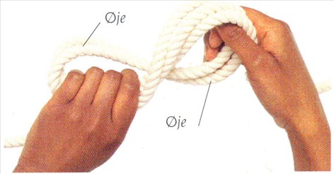 (2) Idet kvejlen holdes i begge hænder, drejer man den ene hånd ind mod sig og den anden væk fra sig, så der dannes to øjer i kvejlen.