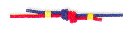 (3) Bind endnu et knob ved at stikke øverste tamp gennem de to tørner, der er lagt omkring nederste reb. Stram og færdiggør knobet som ved Trin 4 under fiskerknobet.