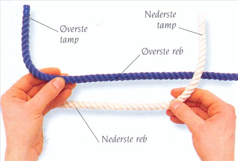 (1) Før tampene på to længder reb sammen fra hver sin side, så rebene ligger parallelt ved siden af hinanden.