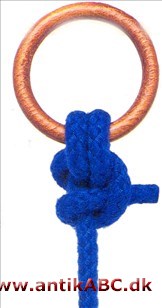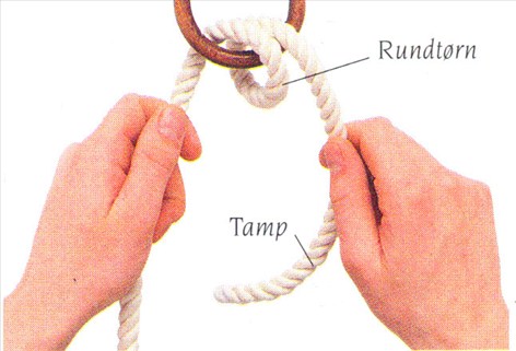 (1) Før tampen på et reb i en rundtørn to gange nedefra og op gennem en ring.