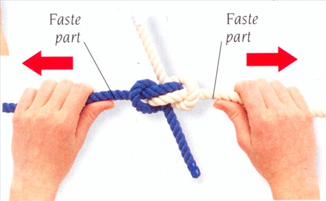 (4) Stram stikket ved at trække i de faste parter, stadig med tampene stukket gennem øjet.