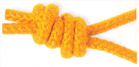 Som ekstra sikkerhed på glatte reb fordobler man hvert overhåndsknob under bindingen af kærlighedsknobet (herover).
