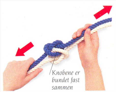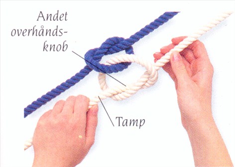 (3) Stram knobet til ved at trække i enderne af begge overhåndsknob.
