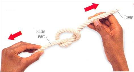 (3) Stram knobet ved at trække i tampen og den faste part.