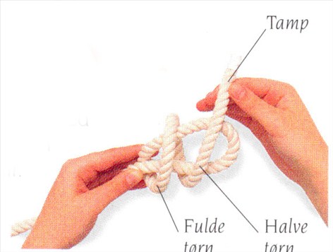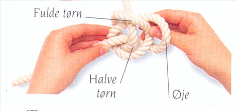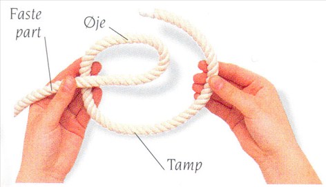 (1) Læg et øje nær enden af et reb, idet tampen føres under den faste part.