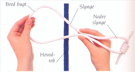 (1) Dan en bred bugt i den ene ende af en slynge, og læg bugten ind over hovedrebet.