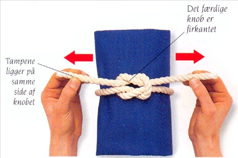 (1) Før tampene omkring genstanden og venstre tamp op over højre tamp.