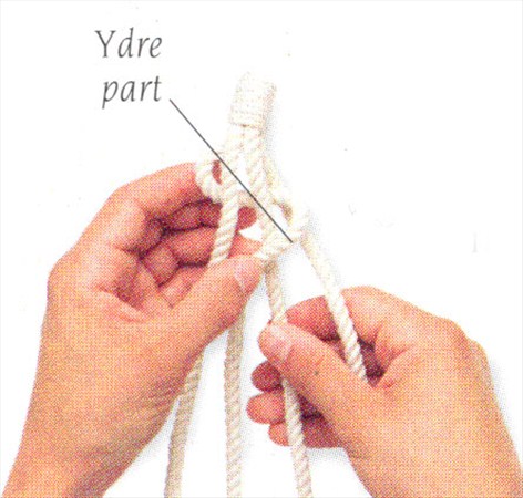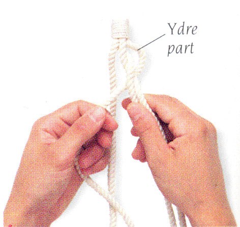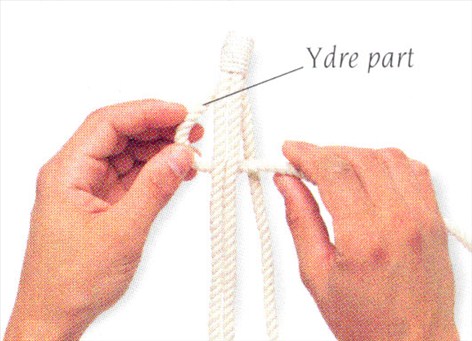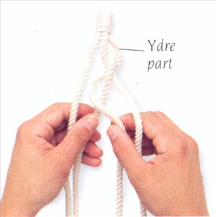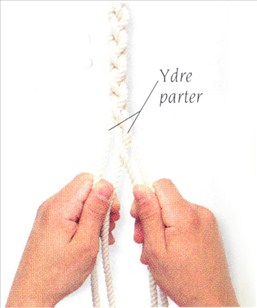 (3) Før denne ydre part op over knuden og ind mellem de to midterste parter.